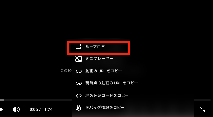 ループにチェックを入れていても、別の動画を再生した時にチェックが外れる仕様(もしかしたらどっかで設定できたりする?)なので、自分のよく忘れて慌てますが、OPサイズの動画とか、尺の短い動画を再生するときは必ずここにチェックが入っているか確認しましょう。